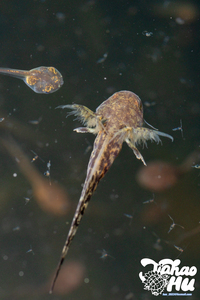 - 幼体 : 全长42mm的幼体,头体宽,向吻端倾斜;具3对外鳃,唇褶发达,颈褶明显;体侧肋沟明显;尾肌不发达,刚完成变态的幼鲵全长63mm