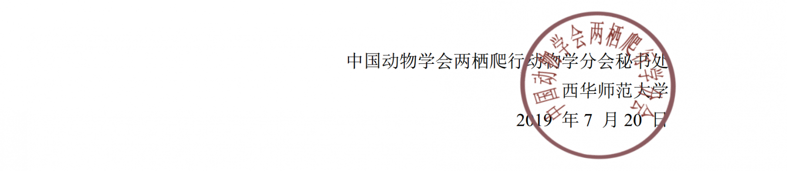 参加两栖爬行动物学分会 2019 年南充学术研讨会回执