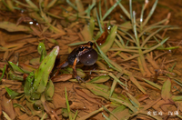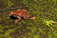 - 习性: 雄性只在大雨过后出现在森林和森林边缘的积水中进行鸣叫和繁殖。由于它和落叶非常相似,加上其难以捉摸的习性,该物种在野外很难被发现