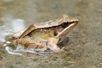 - 习性: 筑巢行为,巢穴的形状是一个直径约25-30mm的泥洞,位于植物的根部附近,巢的顶部是开着的,在雨季可能会装满水;从四月到八月,雄性在巢中从黄昏到午夜都在鸣叫