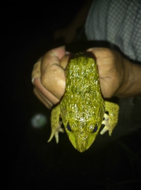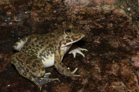 - 体长 : 雄蛙体长66–98mm,雌蛙体长87–121mm,体重可达250g左右