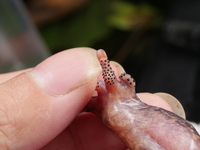 - 第二性征 : 雄蛙前臂很粗壮,内侧2指或3指有黑色婚刺;胸部满布疣粒,疣上有锥状黑刺疣