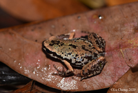 - 生境: 该蛙生活于海拔1040m左右的地区,成蛙栖息于潮湿的落叶下。